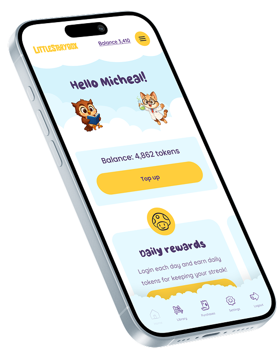 Simply top up your account with tokens to keep unlocking endless new stories for your child.